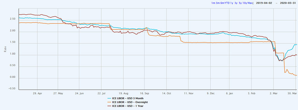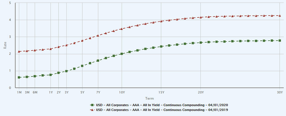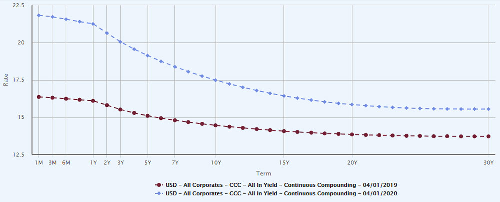 Mit der Corona-Krise kam es auch zur Flucht in sogenannt sichere Häfen. Die Rendite der Staatsanleihen sind auf neue Rekordtiefs gefallen – aufgrund seiner schieren Grösse und somit dem globalen Stellenwert ist hier primär der US-Staatsanleihen-Markt zu betrachten. Die US-Fed hat die Schleusen im Krisenmodus erneut geöffnet und mit rund USD 4 Bio (rund 1/5 des US-Bruttosozialprodukts) einen massiven monetären Stimulus aufgesetzt. Die US-Dollars werden vermehrt im Land selbst gebraucht, was eine gewisse Knappheit im Euro-Dollar Sektor bewirkt und aufstrebende Märkte (emerging markets) in Zugzwang bringt (USD-Verschuldung). Mit dem Eintreten einer tiefen Rezession haben sich auch die Kreditaufschläge ausgeweitet – die Levels kamen dem Stress im System von 2008/09 nahe. Firmenanleihen mit schwachem Rating haben Kursverluste hinnehmen müssen. Im Investment-Grade Bereich (BBB und höher) ist demnächst mit einigen Herabstufungen zu rechnen, was technisch bedingt scharfe Kursreaktionen (nach unten) erwarten lässt. Die Zahl der Konkurse wird zunehmen.