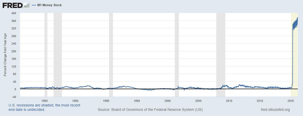Das kommende Quartal verspricht ein Umfeld, das beinah nicht besser sein könnte – zumindest für die Märkte und kurzfristig gedacht. Dass längerfristig die Rechnung nicht aufgeht, liegt auf der Hand. Es ist nicht so, dass die Menschheit nicht schon früher auf die Idee gekommen wäre, via Gelddruck Probleme zu lösen. Die Märkte werden überschwemmt mit Geld. Die Geldmenge M1 (Notenbankgeld) ist innert Jahresfrist um weit über 300% gestiegen.