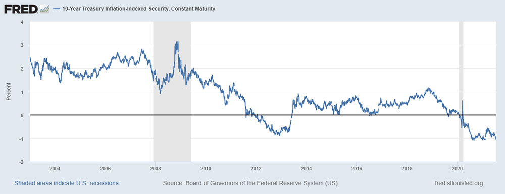 Nach offiziellen Bekundungen der Zentralbanken handelt es sich bei der aktuellen Entwicklung um eine sogenannte transitorische Teuerung. Die Preise ziehen an, weil i) während der Lockdown-Zeit viel Geld angespart worden ist und jetzt der aufgestaute Konsum nachgeholt wird und weil ii) durch die Lockdowns Kapazitäten abgebaut worden sind und nun auf der Angebotsseite fehlen. Nach einem kurzen Anstieg sollte sich die Teuerungsentwicklung wieder einpendeln und leicht ansteigen, ganz nach Fahrplan der Zentralbanken. Die Inflationisten sehen das etwas anders: die erhöhten Preise werden bleiben, was wiederum nach höheren Löhnen verlangt. Eine Aufwärtsspirale kommt in Gang. Die Deflationisten gehen mit den Zentralbanken dahingehend einig, dass der Anstieg der Teuerung nur von temporärer Natur ist, danach jedoch werden die deflationären Kräfte der letzten Jahre sich weiter durchsetzen (Demographie, Technologie, Schuldendruck auf Wirtschaftsvitalität).