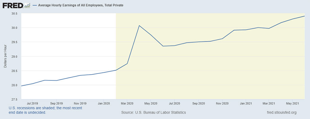 Am Arbeitsmarkt sind gleichzeitig auch die Löhne gestiegen. Kritik wird laut, dass aufgrund der relativ grosszügigen Unterstützungsgelder seitens Regierung die Unternehmen höhere Löhne bezahlen müssen, damit die Leute in den Arbeitsmarkt zurückkehren.