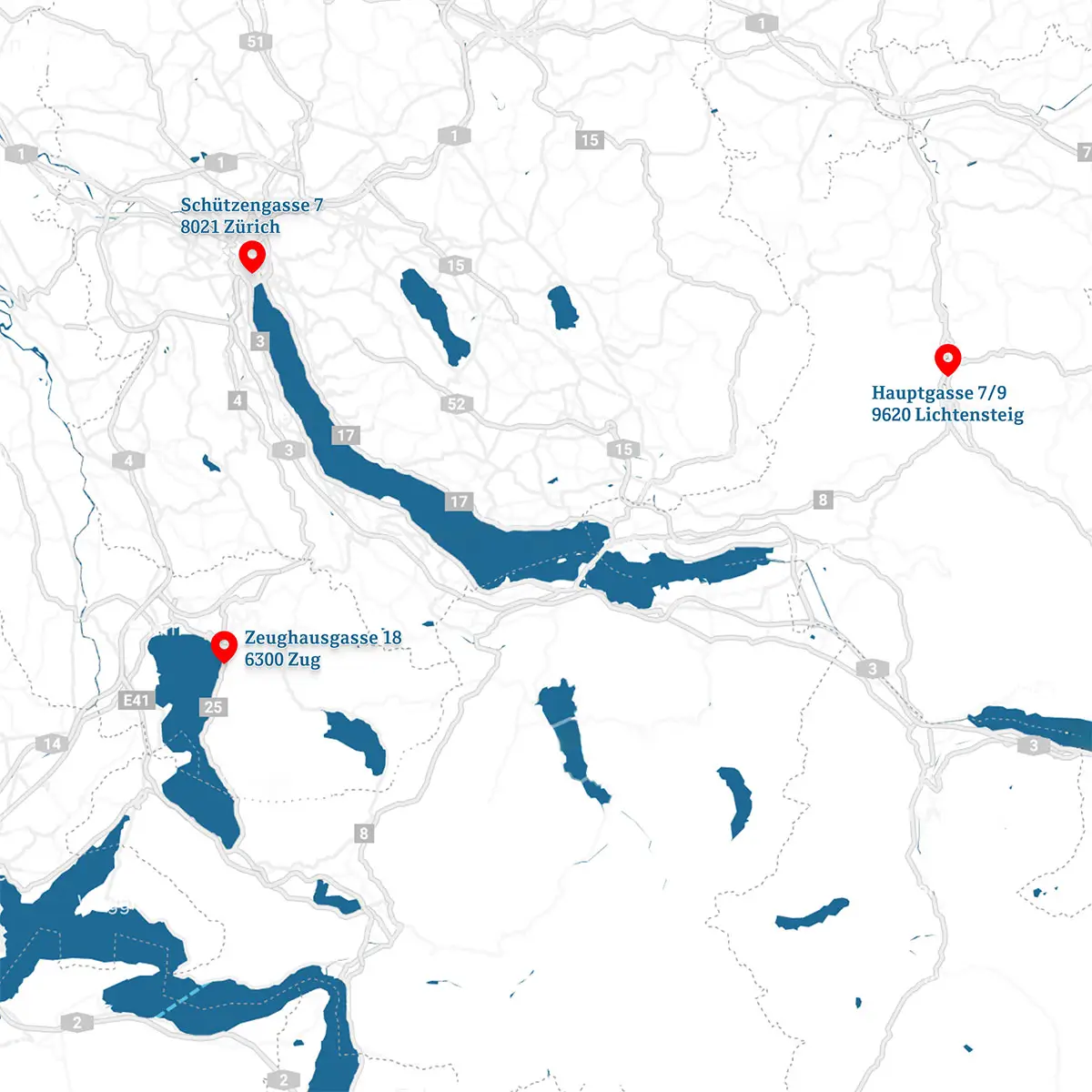 Personally there for you – with offices in Zug, Zurich and Lichtensteig/Toggenburg – visit us!