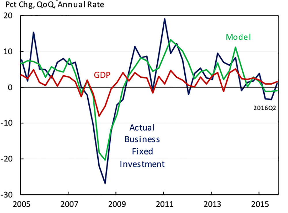 Figure 2 GDP and simple accelerator model of business fixed investment